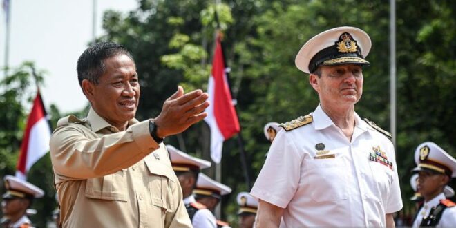 Jakarta – Wakil Menteri Pertahanan Donny Ermawan Taufanto menerima kunjungan kenegaraan Panglima tentara Australia yakni Chief of the Defence Force Australia Admiral David Jhonston di Kementerian Pertahanan, Jakarta Pusat, Jumat.