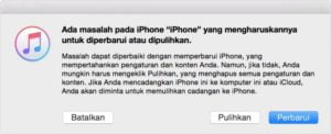 Cara Membuka iPhone Yang Terkunci (Lupa Password) - Pilih Pulihkan (Restore) ketika muncul kotak dialog seperti di bawah ini.