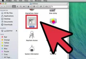 Selain menggunakan shortcut di atas, Anda juga dapat memanfaatkan aplikasi Grab yang merupakan aplikasi bawaan OS X. Grab dapat ditemukan di folder Utilities. Selain menawarkan kemampuan pengambilan screenshot yang sudah disebutkan di atas, Grab juga dapat mengambil screenshot setelah beberapa detik. Fungsi ini akan sangat berguna apabila anda tidak dapat mengambil screenshot ketika shortcut sebuah aplikasi menimpa shortcut pengambilan screenshot. Cara menggunakannya sebagai berikut.
