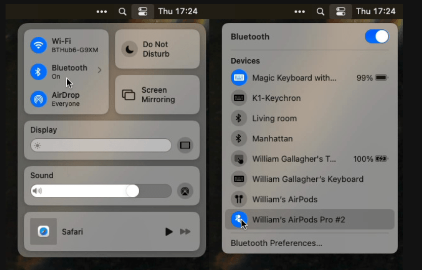 - Klik Preferensi Bluetooth … di bagian bawah daftar perangkat Anda